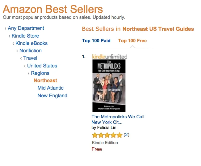 And... We did it again! During Valentine's weekend The Metropolicks We Call New York City: A Guide for Singles hit #1 on the Amazon Best Sellers Top 100 Free ebooks in its category and #3 on the best seller Kindle Short Reads list.